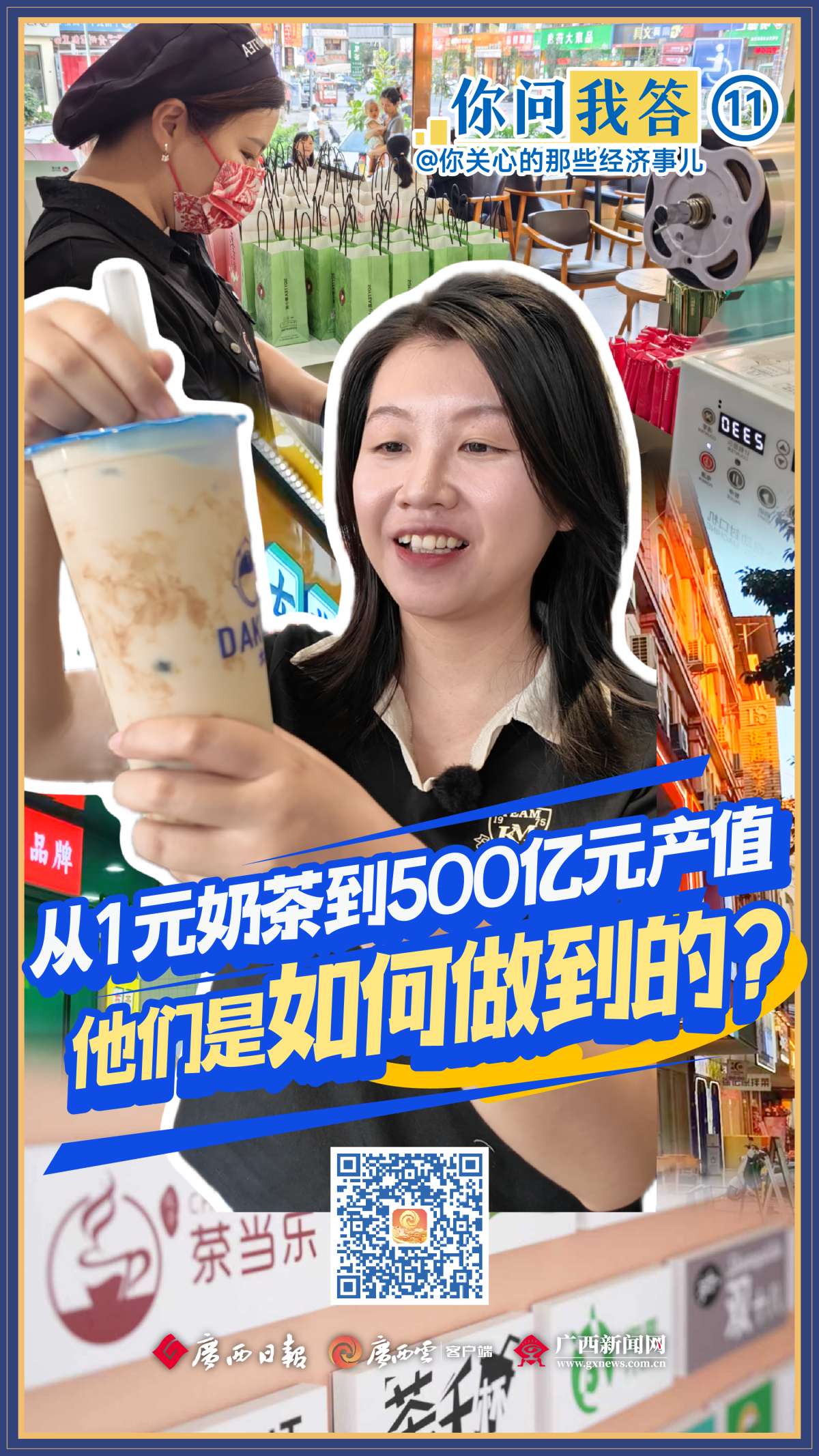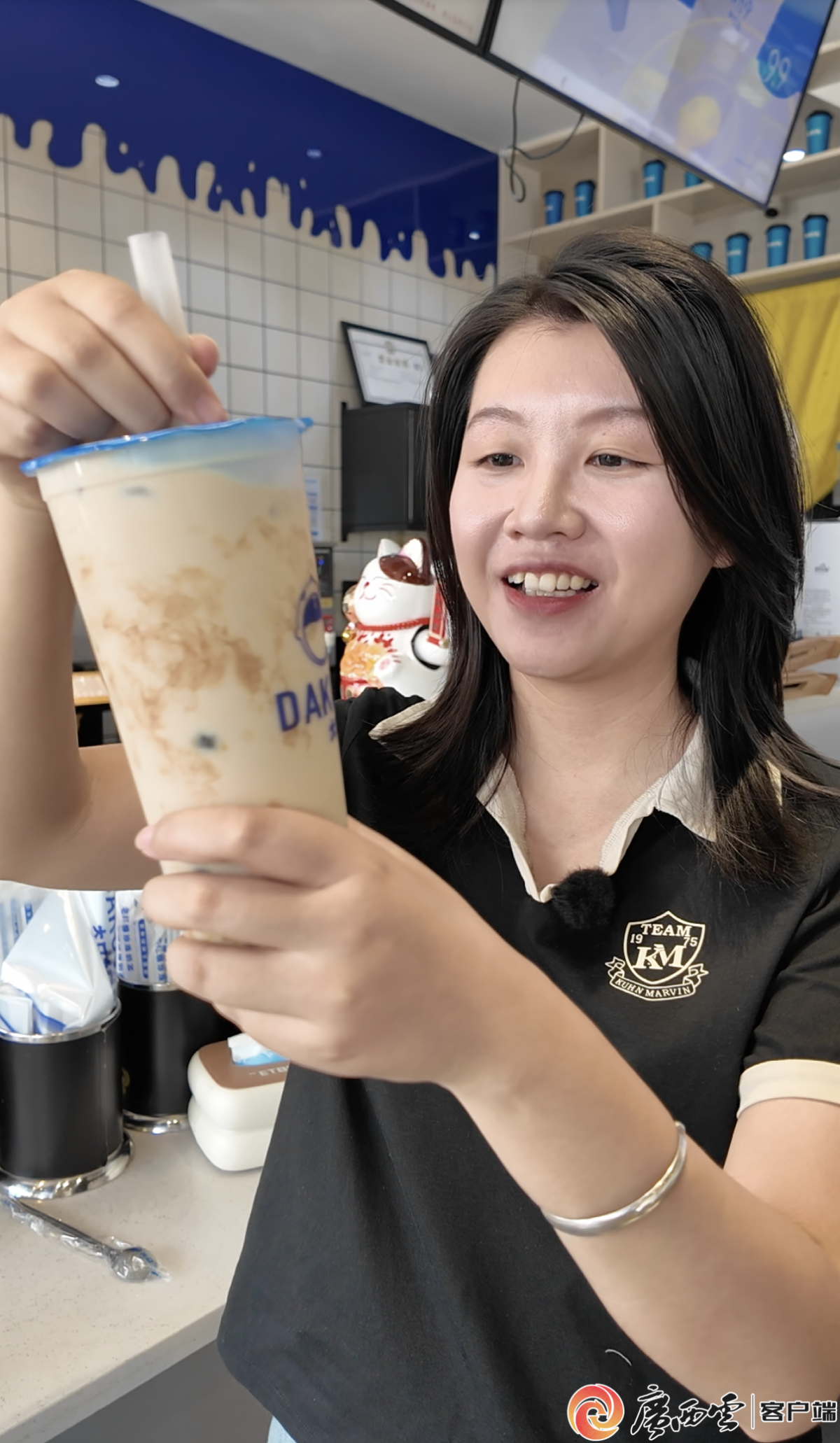 記者正在品嘗知名奶茶品牌“大口九”的飲品。記者 劉俊聰 攝 桑葚、藍(lán)莓等水果,陳皮、枸杞等中藥材紛紛加入茶飲大軍,為消費者提供了更多選擇。據(jù)預(yù)測,今年國內(nèi)新茶飲消費市場規(guī)模有望突破2000億元。 與此同時,平南的奶茶產(chǎn)業(yè)也在悄然發(fā)生變化。 越來越多在外打拼的平南人開始回到家鄉(xiāng),他們帶著在外磨礪的眼界與經(jīng)驗,在傳承中創(chuàng)新、在創(chuàng)新中突破,不斷尋找新的奶茶商機。 這個秋天,你手中的那一杯奶茶,也許就藏著他們的故事。 答題卡 云友7dhpd2lk問:不久前在南寧舉辦了2025世界奶茶節(jié),我去逛了才知道,原來平南縣奶茶品牌有200多個,從業(yè)人員超20萬,門店甚至開到了東南亞,為啥一個縣城做奶茶這么厲害? 答:走進(jìn)平南奶茶街,你會發(fā)現(xiàn),這里與20多年前的奶茶店形象已完全不同,裝修高檔、座位舒適,每個店都很適合拍照打卡。店里提供的服務(wù),有各類兼顧健康與口味的新式茶飲、小吃,賦予了奶茶不一樣的內(nèi)涵。 要在奶茶行業(yè)占據(jù)一席之地,除了自身的能力和實力,還要順應(yīng)時代,把奶茶消費打造成休閑、社交、娛樂、文化的綜合體驗。為此,平南縣專門出臺了打造百億元奶茶產(chǎn)業(yè)實施方案,為統(tǒng)籌資源、統(tǒng)一規(guī)劃發(fā)展奶茶產(chǎn)業(yè)奠定基礎(chǔ)。與此同時,平南奶茶還把目光瞄向了海外,門店開到了越南、老撾、秘魯?shù)鹊,把這份“中國甜蜜”帶到全球各地。 在消費新需求與技術(shù)創(chuàng)新的雙重驅(qū)動下,平南奶茶產(chǎn)業(yè)的發(fā)展圖景,令人期待。