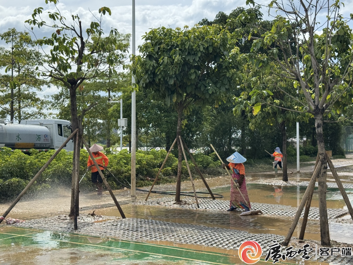 10月5日下午,記者來到南寧邕江運動公園看到,隨著郁江2025年第1號洪水退去,邕江江面已經下降了1.5米左右,之前被洪水淹沒的運動場地、灌木叢等公園設施逐漸露出水面,公園工作人員正用高壓水槍、掃帚、鏟鍬等工具清除積水與淤泥。 邕江沿岸公園郊野段管理單位工作人員正在開展清淤工作。 記者了解到,受洪水影響,此次邕江綜合整治和開發(fā)利用工程PPP項目受災面積達257.2萬平方米,其中綠化區(qū)域219萬平方米、綠道及廣場等硬化鋪裝區(qū)域28.9萬平方米!白蛱煜挛珑呓婚_始下降,我們立即組織工作人員開啟邕江沿岸公園清淤工作!蹦蠈幨芯G化工程管理中心工程管理科科長陳文宏介紹,因洪水消退緩慢,可作業(yè)面有限,截至今日12時,該市已投入工作人員577人,完成邕江PPP項目郊野段清理工作面約6.55萬平方米。 邕江沿岸公園郊野段管理單位工作人員正在開展清淤工作。 邕江沿岸公園郊野段管理單位工作人員正在開展清淤工作。 當前,南寧市相關部門正結合去年洪災清淤經驗,重點研究高效清淤路徑,形成可行方案后,在各標段推廣應用。目前,該市正在推行“水位退、清淤跟”作業(yè)模式,對剛露出水面的淤泥即時清掃,大幅提升作業(yè)效率,實現(xiàn)事半功倍效果。 |