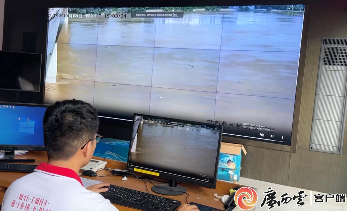 工作人員通過跨江橋梁視頻監(jiān)控系統(tǒng)查看橋梁安全及洪水情況。(本文圖片均由南寧市市政和園林管理局提供) 南寧市市政工程管理處相關(guān)負(fù)責(zé)人介紹,為打好洪水防御主動(dòng)仗,該市市政工程管養(yǎng)工作人員24小時(shí)輪班值守,結(jié)合預(yù)警快速聯(lián)動(dòng)處置江面漂浮物等險(xiǎn)情,真正實(shí)現(xiàn)科技賦能與人工巡查的無縫銜接,確保跨江橋梁在臺(tái)風(fēng)洪水中始終穩(wěn)守安全運(yùn)行底線。 |