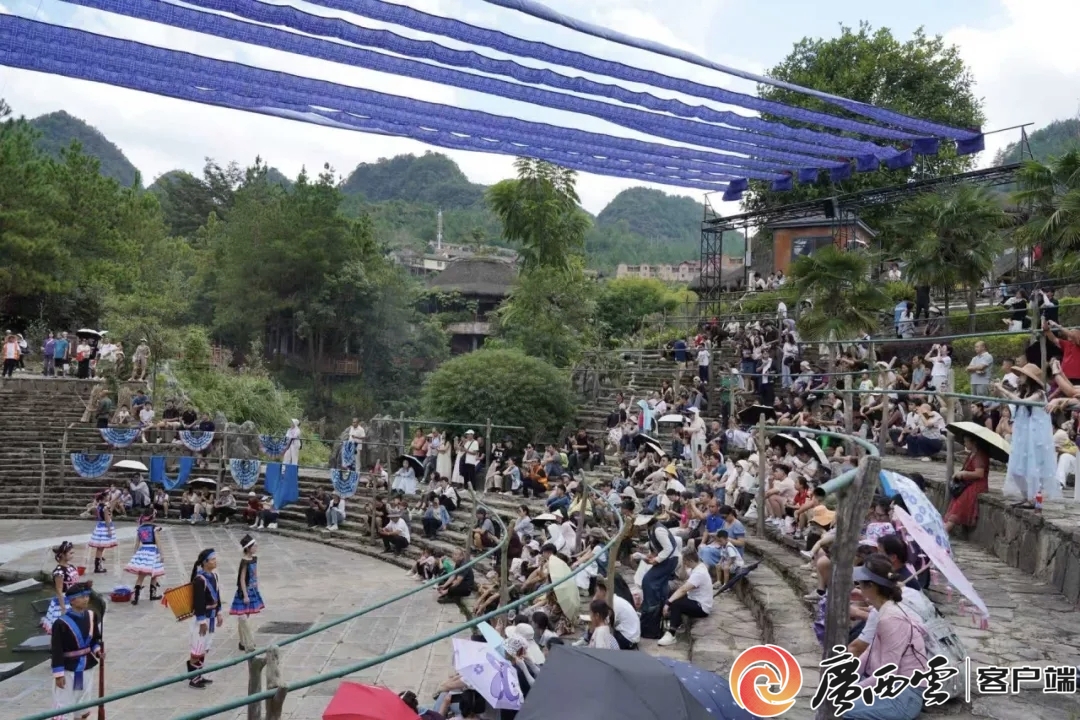 瑤望天下景區(qū)以溪水為臺打造的沉浸式微演繹節(jié)目《日月錦》。景區(qū)資料圖 更顯著的變化來自“山水玩法”的升級。曾經(jīng),涼爽宜人是河池夏秋旅游的主要標(biāo)簽,而今年,“水上運(yùn)動(dòng)+”打開了“清涼經(jīng)濟(jì)”的新局面。天峨紅水河槳板漂流結(jié)合“暖秋逐浪”與“藍(lán)刀魚觀賞”,成為年輕人競相打卡的項(xiàng)目。河池還創(chuàng)造性地將清涼資源與民俗節(jié)慶、非遺特色等深度融合,東蘭坡豪湖水上嘉年華、都安吞榜天窗、“一條會(huì)開花的河”、巴馬百魔洞溶洞避暑等文旅產(chǎn)品同樣收獲游客大量好評。河池不再只是避暑之地,而是“可玩可感”的戶外山水天堂。 夜晚的河池同樣不寂寞。羅城棉花天坑用“天坑幻境”光影秀、森林音樂節(jié)與懸崖書店亮燈儀式,讓數(shù)萬游客留下來、玩下去,假期接待量增長50%;宜州區(qū)懷遠(yuǎn)古鎮(zhèn)則以“非遺+現(xiàn)代”演出與傳統(tǒng)祭月儀式,帶動(dòng)夜間消費(fèi)增長超三成。夜經(jīng)濟(jì)不再是白天的補(bǔ)充,而成為文旅體驗(yàn)的重要時(shí)段。