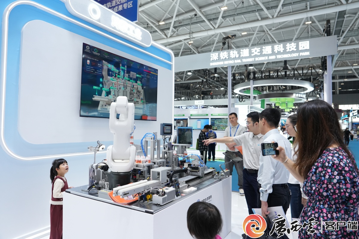一場(chǎng)高交會(huì),既是展示AI成果的舞臺(tái),更是洞見未來的窗口。 11月中旬,第二十七屆中國(guó)國(guó)際高新技術(shù)成果交易會(huì)在深圳舉行。在這場(chǎng)被譽(yù)為“中國(guó)科技第一展”的盛會(huì)上,全球100多個(gè)國(guó)家和地區(qū)的5000多家知名企業(yè)及國(guó)際組織參展,5000余項(xiàng)代表全球科技前沿的新產(chǎn)品、新技術(shù)、新成果集中亮相。數(shù)智化浪潮奔涌而來,廣西如何把握機(jī)遇、乘勢(shì)而上? 直擊高交會(huì)現(xiàn)場(chǎng),來一起沉浸式逛展!記者 古秀芳 付瑋燁 實(shí)習(xí)生 黃海寧 科技前沿: 從“輕量級(jí)”服務(wù)到“重量級(jí)”守護(hù) 算力作為AI技術(shù)發(fā)展的關(guān)鍵支撐,發(fā)展態(tài)勢(shì)格外引人關(guān)注。 高交會(huì)現(xiàn)場(chǎng),華為昇騰展區(qū)的昇騰384超節(jié)點(diǎn)格外吸睛,僅用384顆國(guó)產(chǎn)昇騰NPU,就能輸出300P算力,針對(duì)Qwen、DeepSeek等主流大模型訓(xùn)練時(shí),性能較傳統(tǒng)同量級(jí)算力集群躍升3倍以上,訓(xùn)練時(shí)長(zhǎng)可縮短近70%。 展區(qū)代表余程介紹,這一突破源于革命性的對(duì)等計(jì)算架構(gòu)。通過光模塊搭建高速連接,拓寬通信帶寬、降低互聯(lián)時(shí)延;再經(jīng)軟硬協(xié)同實(shí)現(xiàn)多卡內(nèi)存連續(xù)調(diào)度,將總線延伸至整機(jī)柜乃至跨機(jī)柜,讓分散的“小水管”匯成“大運(yùn)河”,讓整個(gè)超節(jié)點(diǎn)如同單臺(tái)計(jì)算機(jī)般高效運(yùn)轉(zhuǎn),減少算力損耗,解決了大模型訓(xùn)練“算力越多、效率越低”的痛點(diǎn)。