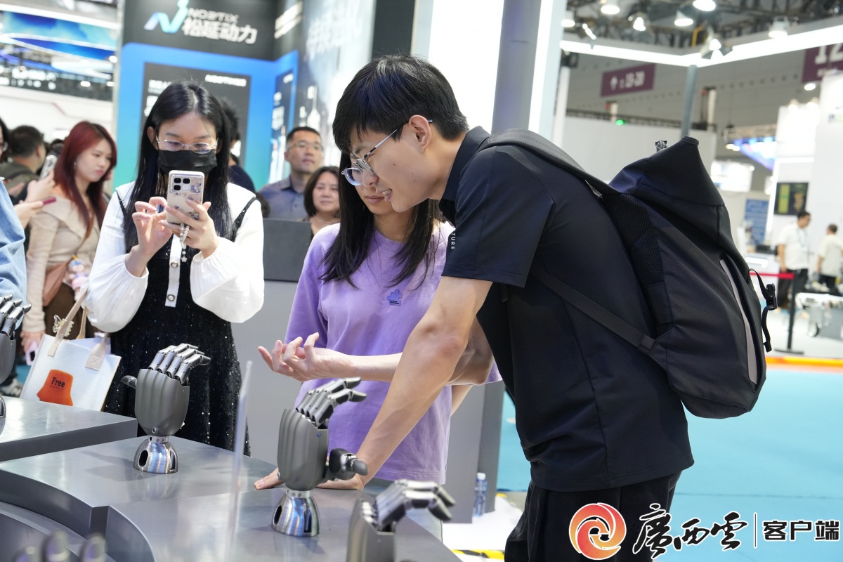 高交會(huì)上,按小時(shí)計(jì)費(fèi)的共享機(jī)器人吸引外國(guó)客商目光。記者 古秀芳 攝 除了共享機(jī)器人,此次高交會(huì)上還出現(xiàn)按算力使用量付費(fèi)的云端彈性算力服務(wù)、可模塊化租用的智能檢測(cè)設(shè)備。這不禁讓人暢想:當(dāng)更多AI共享產(chǎn)品在廣西集成,東盟客商按需挑選租用,這種普惠模式或?qū)⒏咝Т蛲ㄖ袊?guó)AI技術(shù)在東盟的落地通道。 在強(qiáng)腦智能、睿研智控等企業(yè)的展位前,沒有整體機(jī)器人演示,取而代之的是一只只靈巧的機(jī)器手在操作,抓雞蛋、擰螺絲、搭積木,精準(zhǔn)靈活。“機(jī)器人會(huì)跑會(huì)跳已不稀奇,真正創(chuàng)造價(jià)值的是‘最后一厘米’的靈巧操作!甭愤x平感慨,隨著行業(yè)逐漸成熟,從業(yè)者愈發(fā)意識(shí)到細(xì)分部件的重要性,沒有優(yōu)質(zhì)細(xì)分部件供應(yīng)商,再先進(jìn)的整機(jī)設(shè)計(jì)也是空中樓閣。 在強(qiáng)腦智能、睿研智控等企業(yè)的展位前,參展游客被一只只靈巧的機(jī)器手吸引。記者 古秀芳 攝 “‘廣西集成’理念恰好精準(zhǔn)切入這一邏輯。”路選平認(rèn)為,廣西可通過匯聚各類AI軟硬件細(xì)分資源的“珍珠”,再以平臺(tái)化整合這根“紅線”串珠成鏈,發(fā)揮細(xì)分技術(shù)的專業(yè)所長(zhǎng),釋放整體輸出的協(xié)同價(jià)值,更好對(duì)接?xùn)|盟產(chǎn)業(yè)多元需求。 企業(yè)所望: 從研發(fā)“練兵”到出海應(yīng)用 技術(shù)需落地,理念要實(shí)踐,“北上廣研發(fā)+廣西集成+東盟應(yīng)用”這條高效成果轉(zhuǎn)化路徑,在高交會(huì)上得到多家不同領(lǐng)域的企業(yè)代表深度回應(yīng)。 “目前我們正與廣西人工智能學(xué)院緊密對(duì)接,計(jì)劃共建聯(lián)合實(shí)驗(yàn)室。”深圳市睿研智能控制有限公司聯(lián)合創(chuàng)始人王啟芳介紹,作為機(jī)器人核心部件領(lǐng)域的重要企業(yè),其研發(fā)的高自由度靈巧手能精準(zhǔn)完成精密組裝,也可以適配烹飪、農(nóng)業(yè)采摘等場(chǎng)景。 “研發(fā)可留在深圳,‘練兵場(chǎng)’適合設(shè)在廣西!蓖鯁⒎急硎荆植磕P陀(xùn)練缺乏開源數(shù)據(jù)集,而廣西高校密集、人工成本友好,且農(nóng)業(yè)、金屬產(chǎn)業(yè)等場(chǎng)景與產(chǎn)品應(yīng)用高度契合,適合搭建實(shí)驗(yàn)訓(xùn)練場(chǎng)。同時(shí),廣西毗鄰東盟,東盟客商可現(xiàn)場(chǎng)了解訓(xùn)練進(jìn)度、提出定制化需求,大幅縮短交付周期。 但王啟芳也直言,廣西還缺乏充足的AI人才儲(chǔ)備。她建議,一是廣西加大AI人才培養(yǎng)力度,在高等教育層面開設(shè)相關(guān)課程與專業(yè),聚焦靈巧手控制、具身智能算法等細(xì)分領(lǐng)域,與企業(yè)共建定向培養(yǎng)機(jī)制;二是通過政策引導(dǎo)科學(xué)調(diào)配用工成本,降低技術(shù)型人才流失率;三是為聯(lián)合實(shí)驗(yàn)室及訓(xùn)練場(chǎng)提供場(chǎng)地或啟動(dòng)資金支持,推動(dòng)技術(shù)實(shí)現(xiàn)“訓(xùn)練—轉(zhuǎn)化—輸出”的正向循環(huán)。