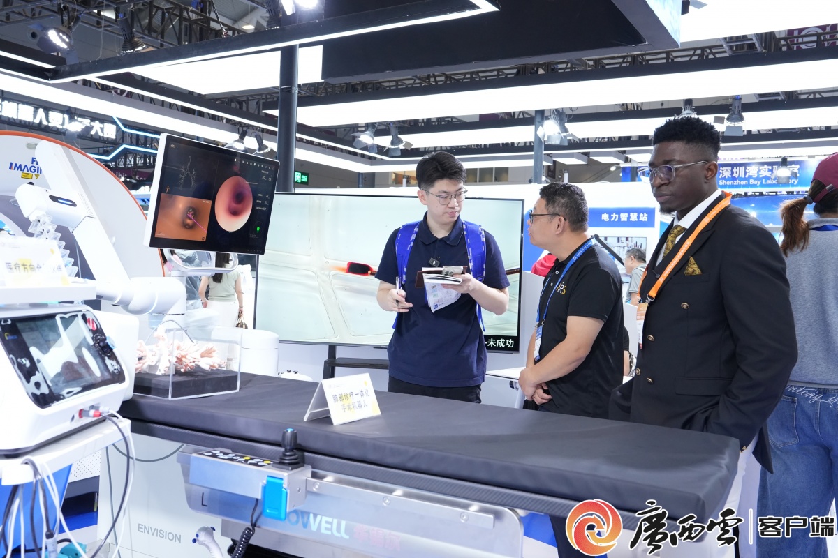 高交會(huì)現(xiàn)場(chǎng),華為昇騰展區(qū)的昇騰384超節(jié)點(diǎn)引發(fā)關(guān)注。記者 古秀芳 攝 從昇騰384超節(jié)點(diǎn)的突破中,不難窺見“多快好省”算力發(fā)展新方向:算力設(shè)施國(guó)產(chǎn)化加速提升自主可控能力,發(fā)展邏輯從堆砌增能轉(zhuǎn)向降本增效,這與廣西低成本、高效能打造面向東盟AI合作高地的思路不謀而合。 算力筑基,終要落地場(chǎng)景。高交會(huì)上,具身智能向民生領(lǐng)域的滲透,為“廣西集成+東盟應(yīng)用”提供了精準(zhǔn)切口。 零次方展位前,幾臺(tái)輪臂機(jī)器人各司其職,清掃地面、拾撿雜物、清潔馬桶,動(dòng)作利落、一絲不茍。“家里要是有這樣的‘機(jī)器人管家’,能真正解放雙手、減少生活壓力!睂I(yè)觀眾岑曉雯的感慨,道出了普通民眾對(duì)實(shí)用型智能設(shè)備的需求。展位代表認(rèn)為,具身機(jī)器人正從觀賞型向?qū)嵱眯娃D(zhuǎn)變,目前工業(yè)端應(yīng)用已成熟,但居家具身機(jī)器人仍是藍(lán)海,“抓居家高頻痛點(diǎn)是突破方向”。 從居家生活的“輕量級(jí)”智能服務(wù),到醫(yī)療健康的“重量級(jí)”生命守護(hù),AI的應(yīng)用縱深正持續(xù)拓展。深圳市人工智能與機(jī)器人研究院的呼吸介入機(jī)器人系統(tǒng),通過AI導(dǎo)航矯正算法和低延遲配準(zhǔn)算法,可經(jīng)氣道安全穿梭,毫米級(jí)鎖定肺結(jié)節(jié)并快速消融,將手術(shù)效率提升10倍以上,實(shí)現(xiàn)無創(chuàng)操作、減少并發(fā)癥,吸引了西班牙客商Alvaro gil當(dāng)場(chǎng)與工作人員交換名片,尋求合作。