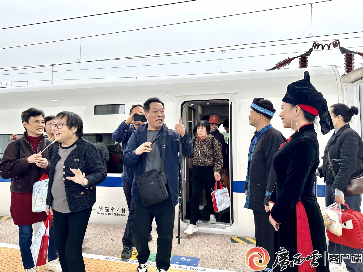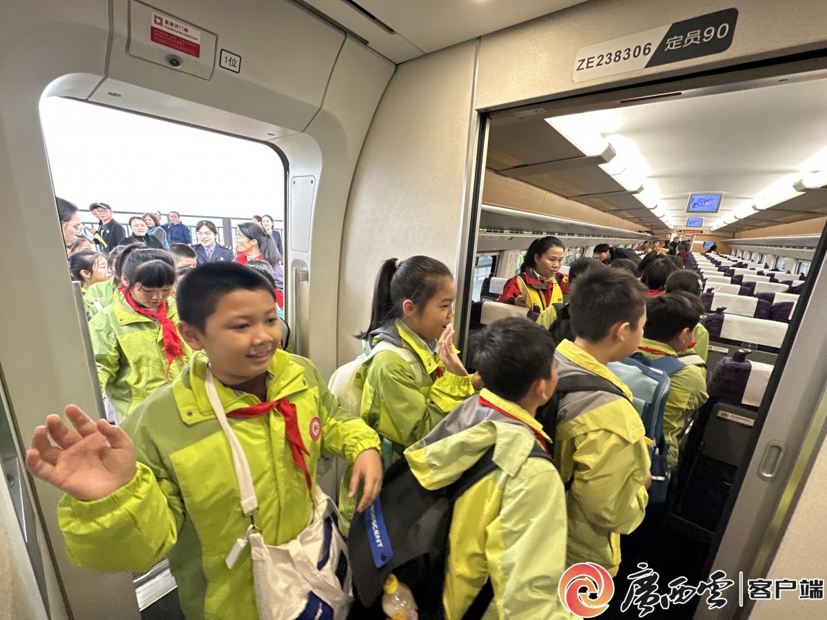 龍州縣的小學(xué)生搭乘首發(fā)列車到崇左開(kāi)展研學(xué)活動(dòng)。