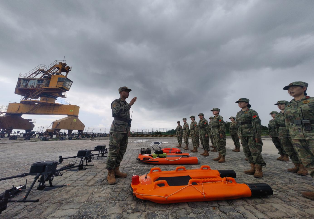 謝亮組織女民兵連開(kāi)展訓(xùn)練。 “制勝海疆絕不是紙上談兵,而是軍令如山” 2021年,謝亮調(diào)任沿海一線工作。彼時(shí)正值深化民兵調(diào)整改革之年,民兵向新向戰(zhàn)轉(zhuǎn)型。 受領(lǐng)建設(shè)一支精干高效的新型女民兵連任務(wù)后,謝亮深入30余家高科技企事業(yè)單位走訪調(diào)研,摸清編組潛力底數(shù)。按照擔(dān)負(fù)任務(wù)與崗位需求,他們吸引了一批直升機(jī)駕駛員、快艇駕駛員、網(wǎng)絡(luò)工程師、救生潛水員等專(zhuān)業(yè)人才入隊(duì),一支新型民兵保障隊(duì)伍羽翼漸豐。 “一艘漁船遇險(xiǎn),急需救援!苯衲瓿酰@支女民兵連首次亮相北部灣軍地聯(lián)合訓(xùn)練。接到情況通報(bào)后,女民兵操控?zé)o人機(jī)升空偵察水面情況,同時(shí)兩艘快艇駛向事發(fā)地域,展開(kāi)立體式救援……女民兵過(guò)硬的軍事素養(yǎng)、專(zhuān)業(yè)技能和戰(zhàn)斗作風(fēng),贏得軍地領(lǐng)導(dǎo)的高度稱(chēng)贊。 “制勝海疆絕不是紙上談兵,而是軍令如山。”這些年,謝亮著眼應(yīng)對(duì)復(fù)雜多變的形勢(shì),在演訓(xùn)的深水區(qū)全力開(kāi)拓攻堅(jiān)。