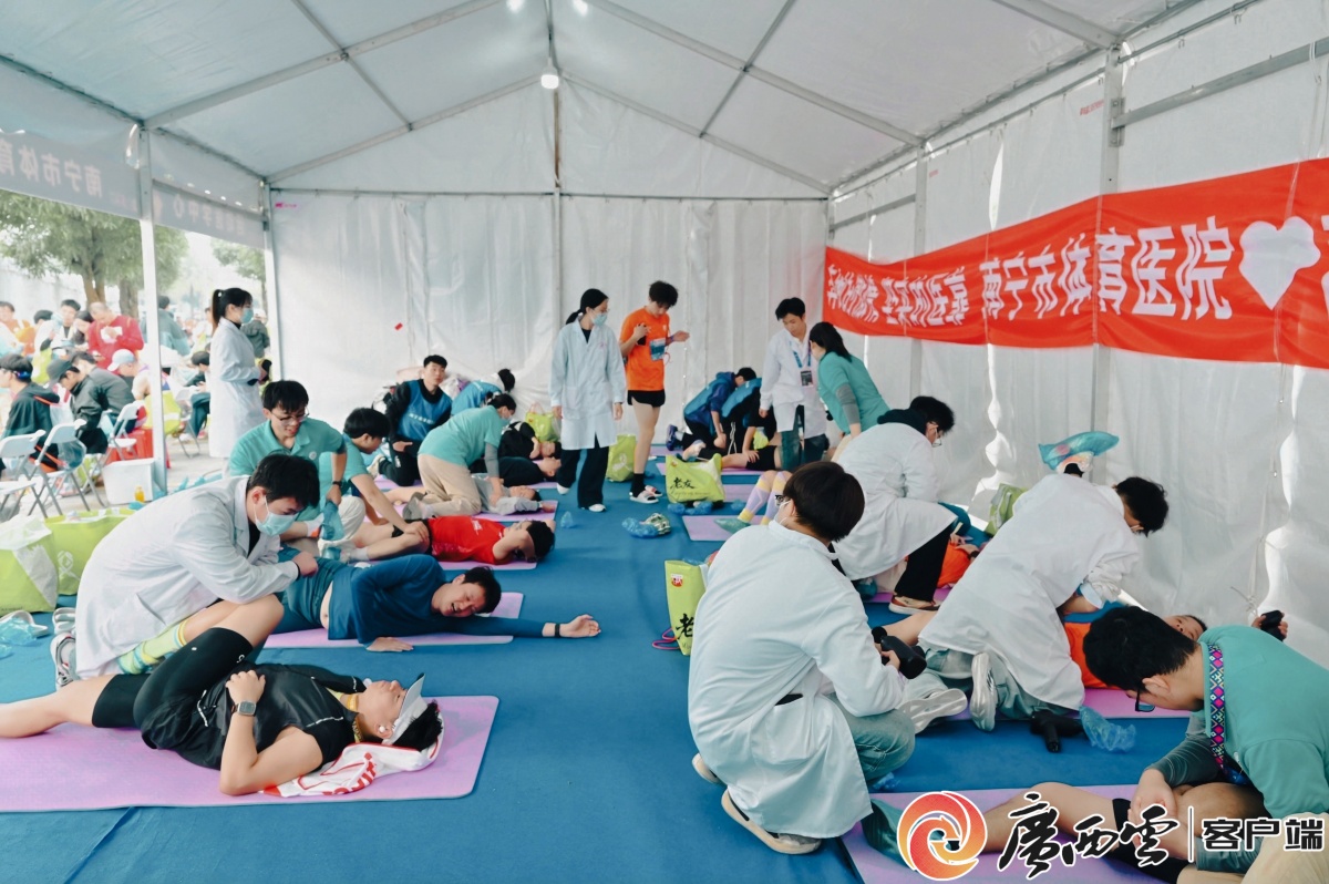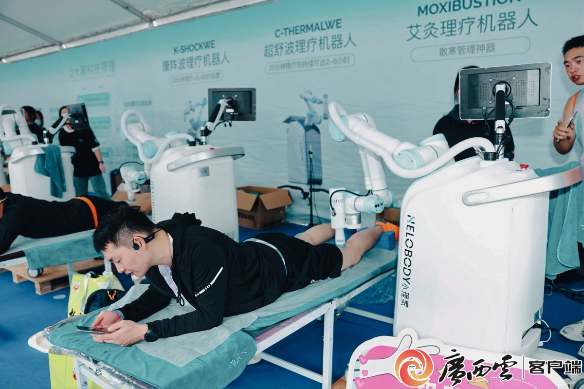 工作人員、AI機(jī)器人齊上陣,為跑者提供賽后按摩放松服務(wù)。組委會(huì)供圖 沒(méi)能中簽參賽,南寧市民羅女士選擇自發(fā)到賽道邊為跑者加油,她說(shuō):“在賽道邊有序?yàn)榕苡褌兗佑,展現(xiàn)的是南寧人的熱情和對(duì)馬拉松的支持,希望所有外地來(lái)邕的跑者都能有一個(gè)很好的體驗(yàn)!薄敖衲昴像R的區(qū)外選手達(dá)2.8萬(wàn)余人,占比高達(dá)63.5%。”南寧市體育局副局長(zhǎng)潘建輝介紹說(shuō),“我們推出了終點(diǎn)出AI機(jī)器人為跑者按摩放松、分性別分別設(shè)計(jì)獎(jiǎng)牌、給所有跑者發(fā)送溫馨提示短信等多項(xiàng)細(xì)節(jié)措施,希望能夠提升參賽選手參賽體驗(yàn),讓他們感到賓至如歸! |