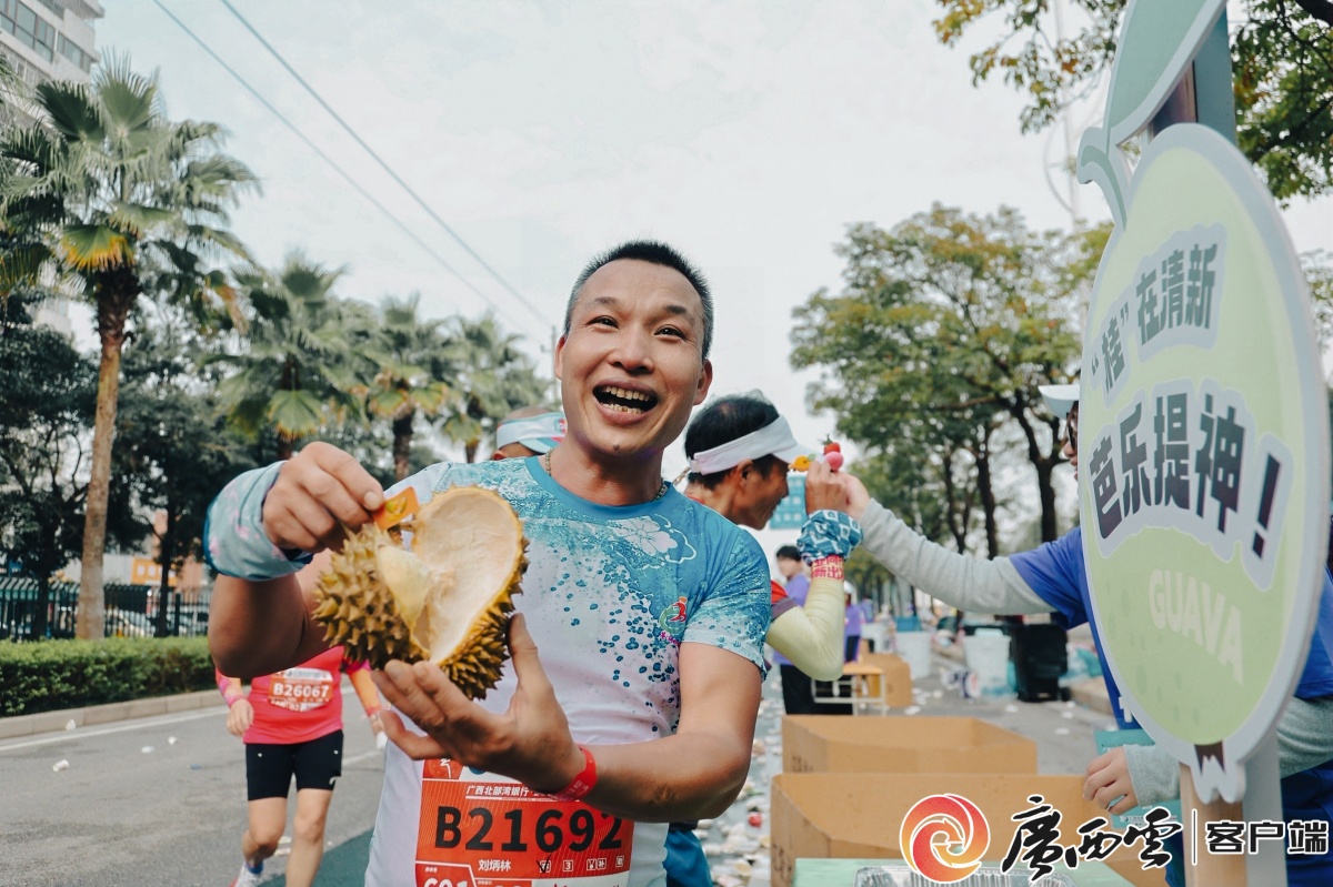 跑者用腳步丈量南寧城市之美。記者 周軍 攝 到祖國(guó)南疆賽跑,怎能少了“水果自由”?“榴蓮!好多榴蓮!”在半程馬拉松賽道的功能補(bǔ)給站,外地跑者張臻東感嘆。賽道沿途的功能補(bǔ)給站以“本地特色+經(jīng)典常見”為核心,提供了榴蓮、葡萄、火龍果、砂糖橘等種類豐富的水果,終點(diǎn)完賽區(qū)鋪滿廣西特色水果圖案的繽紛之路,是“水果自由”的Plus專區(qū)……十二月的南寧,跑者們切身感受著南國(guó)城市的暖冬氣候,享受“水果自由”,為跑者帶來(lái)了一段香甜而難忘的“果香旅程”。