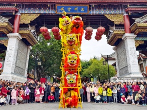 2月17日,百色市田陽區(qū)田州古城景區(qū)里一片喜慶景象,眾多市民、游客前來觀看“雄獅騰舞慶新春”展演活動,感受濃濃年味。藍(lán)慶侃 李琪春 攝(廣西云-廣西日報)